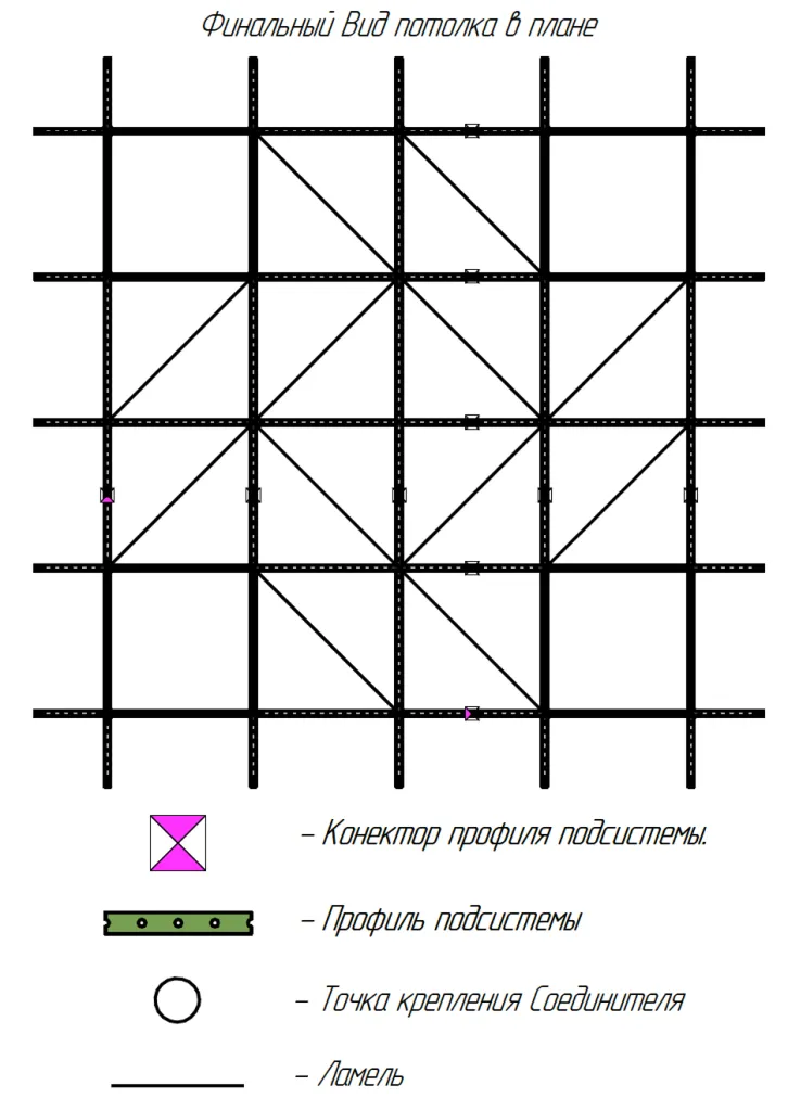 Ламели размещаются строго согласно утверждённой раскладке потолка.