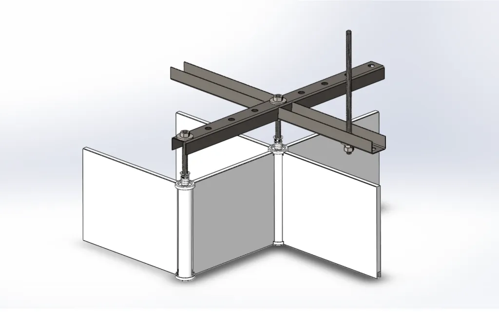 Монтаж потолочной системы ОПТИМУС выполняется поэтапно: установка шпилек крепления, сборка подсистемы, фиксация соединителей и монтаж ламелей согласно проектной раскладке. Конструкция разработана для быстрой сборки, точной геометрии и удобного доступа к инженерным коммуникациям.