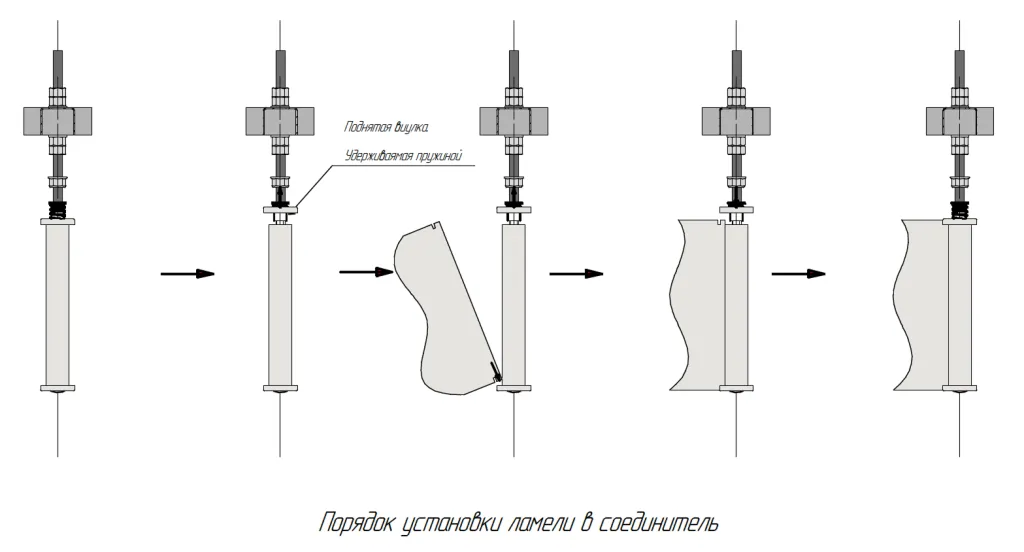 Подсистема формирует несущую сетку конструкции, а ламели устанавливаются между соединителями согласно проектной раскладке.